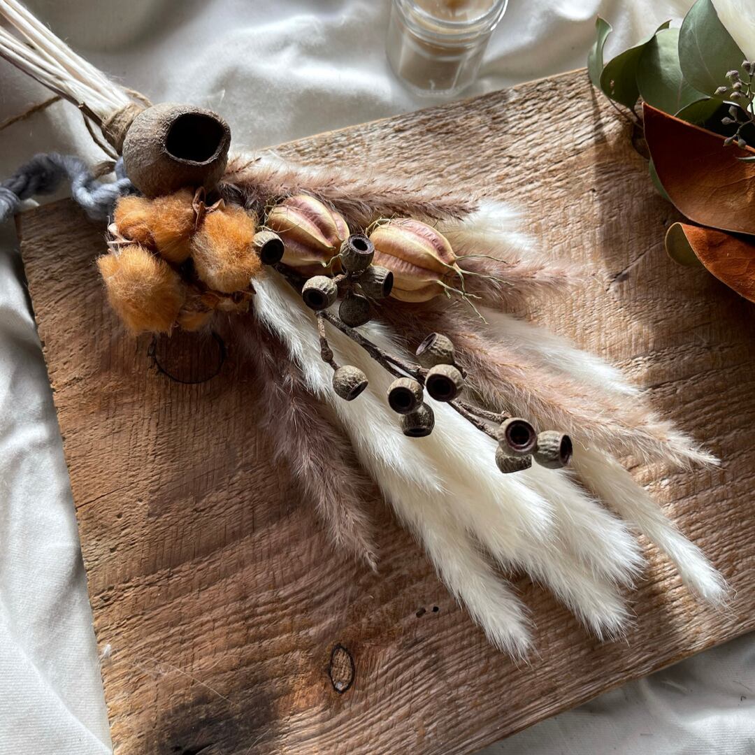 ※ドライフラワーは繊細です。崩れないようにお包みしますが、運搬時に多少の葉落ちがります。ご了承くださいませ。